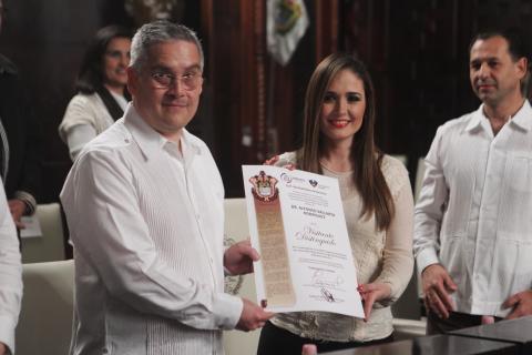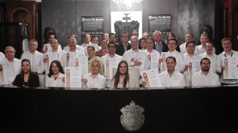 Veracruz, Ver.- En el marco del “XLVII Congreso Internacional de la Asociación Mexicana de Cirugía Plástica, Estética y Reconstructiva, A.C.”, la Presidenta del DIF Municipal, Maricruz Barreda Cobo, entregó un reconocimiento como "Ciudadanos y Visitantes Distinguidos" a los médicos cirujanos asistentes al evento, durante una ceremonia realizada en la Sala de Cabildo.