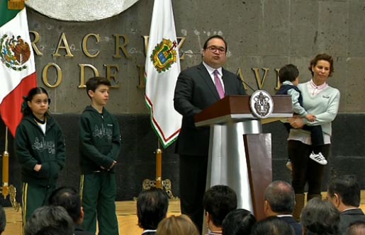 Xalapa, Ver. Acompañado de su familia, el gobernador Javier Duarte de Ochoa ofreció una rueda de prensa en donde respondió a las acusaciones en contra de su gobierno por el desvío de recursos públicos.