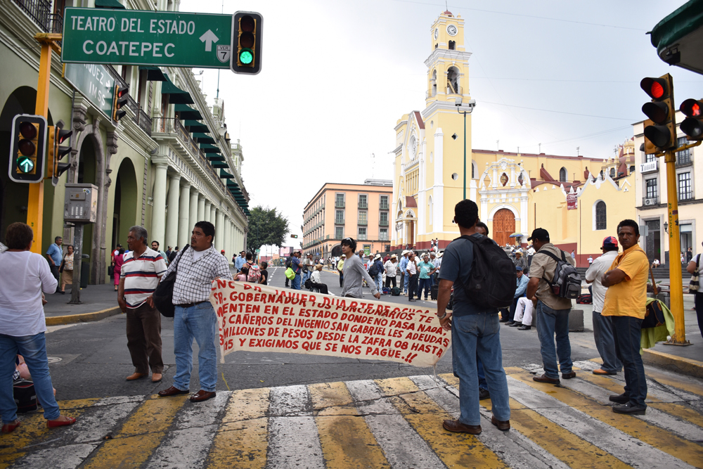 Xalapa, Ver.- Por segundo día, cañeros del Ingenio San Gabriel se manifestaron en la Plaza Lerdo y cerraron el centro de la cuidad para exigir la intervención del gobierno estatal para el pago de 37 millones de pesos pendientes desde la zafra del 2008 a la actual.