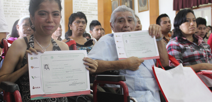 Xalapa, Ver., 08 de junio de 2016.- El Instituto Veracruzano de Educación para los Adultos (IVEA) ofrece una educación inclusiva, al brindar sus servicios educativos a personas con discapacidad mayores de 15 años, para que se alfabeticen o culminen su primaria o secundaria.