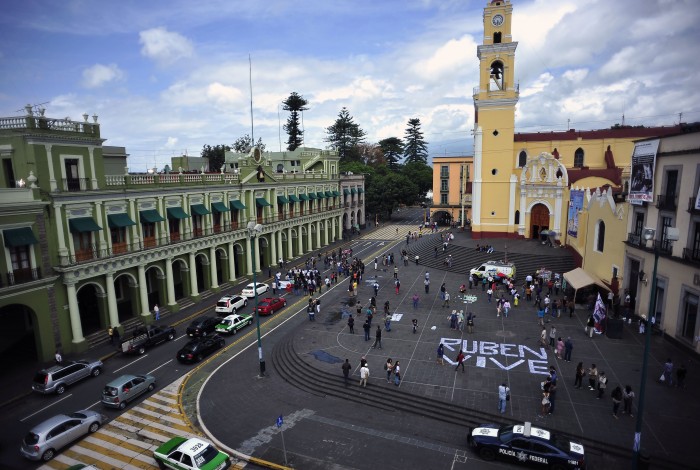 Xalapa, Ver. A un año de la muerte del fotoperiodista Rubén Espinosa, periodistas exigieron el esclarecimiento de su asesinato. Desde temprana hora, se desarrollaron actividades en Plaza Lerdo (Regina) y una pequeña marcha en el centro de la capital.