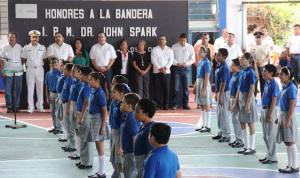 En el colegio John Spark, de la colonia Petrolera, el Alcalde participó en los honores a la Bandera y felicitó a los estudiantes de sexto grado por la declamación de los poemas “Un buen estudiante” y “Empieza un nuevo ciclo escolar”.