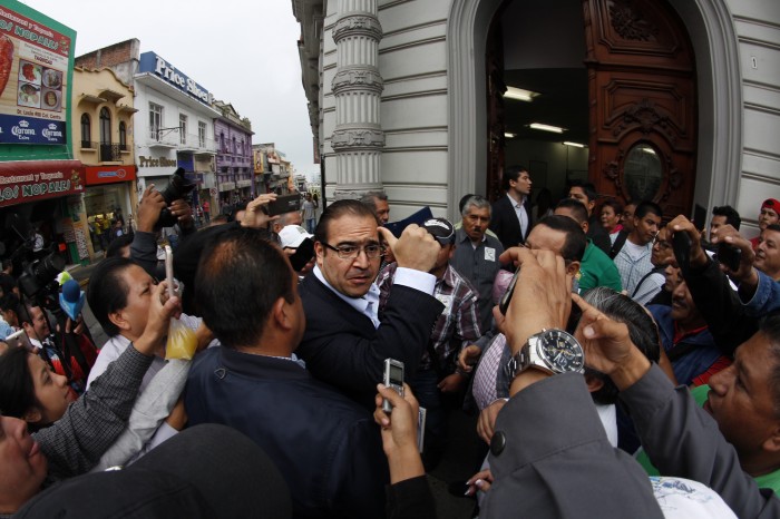 Duarte de Ochoa acudió a las oficinas del Servicio de Administración Tributaria (SAT) en Xalapa, en donde fue abordado por un grupo de taxistas inconformes que previamente se habían manifestado en frente de las oficinas de la Fuerza Civil, junto al Palacio de Gobierno.