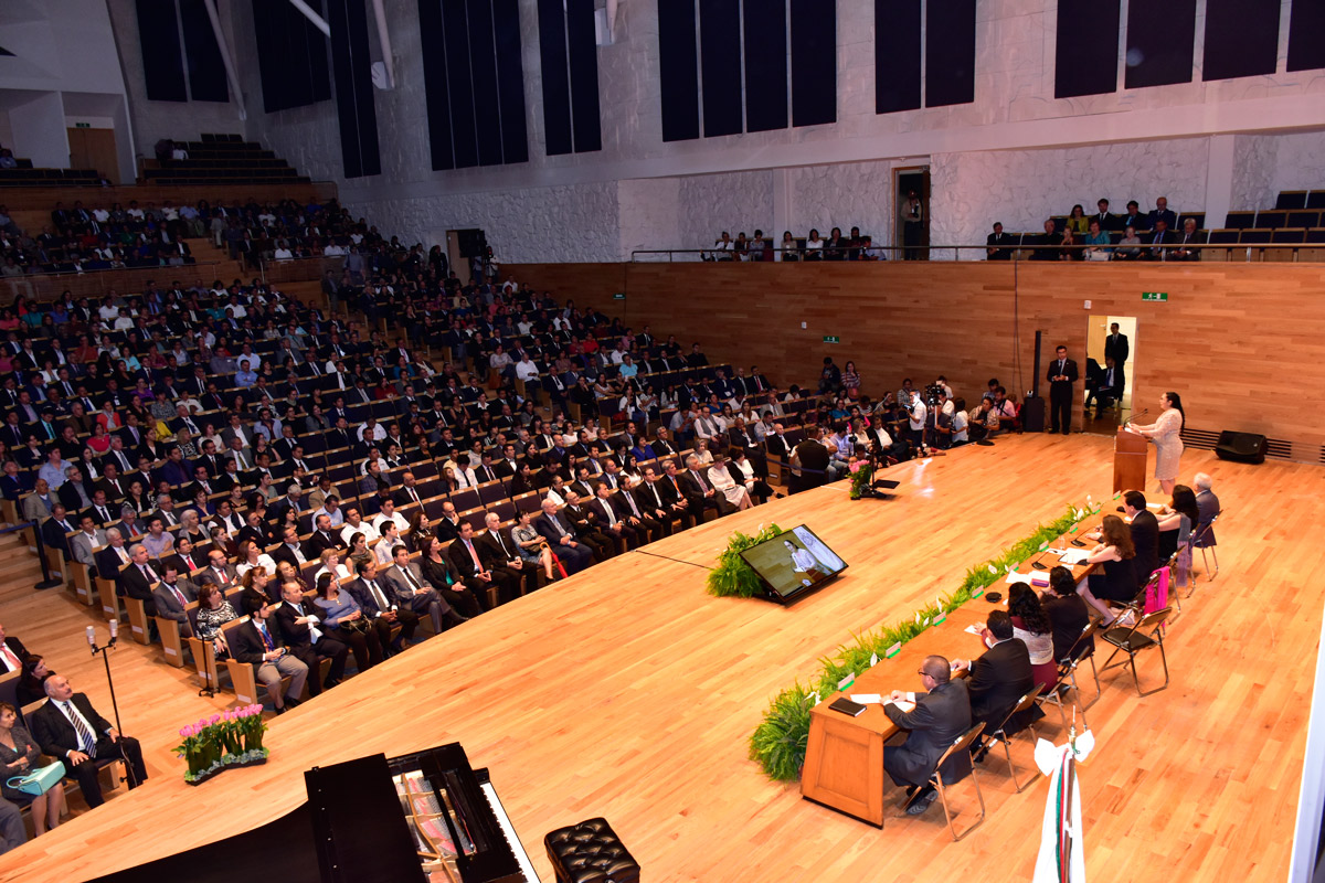 Declaró ante el auditorio que “nos ven como un ejemplo a seguir en la educación superior pública, estos son nuestros frutos, no meras promesas”.