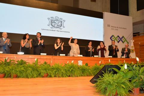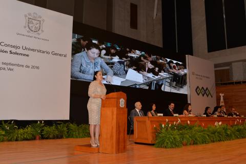 La Rectora enfatizó que la UV está comprometida con la formación integral, “nuestros estudiantes no son nuestros clientes, sabemos que la educación superior no sólo es capacitación para el trabajo, sino además formación para la vida”.