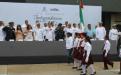 La diputada federal, Norma Rocío Nahle García; el comandante de la Tercera Zona Naval, vicealmirante Francisco José Ortiz Ortiz; el comandante de la Sexta CINE, teniente coronel de Infantería, Efrén Martínez Casimiro; y el capitán de Puerto, Gaspar Cime Escobedo.