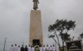 Previo a esta celebración colocaron una ofrenda y montaron guardia en el monumento a Miguel Hidalgo y Costilla.