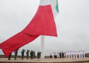 Posteriormente el Alcalde atestiguó el izamiento de la Bandera a toda asta, y se realizaron los honores al Lábaro Patrio en la Plaza de la Bandera.