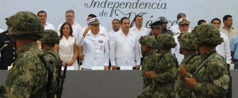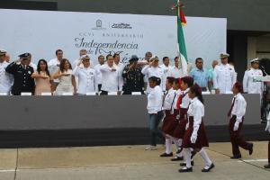 Coatzacoalcos, Ver.- Un total de 4 mil 570 alumnos desde primaria hasta universidad; elementos del Ejército Naval, Policía Federal, y del Pentatlón, participaron en el Desfile Cívico-Militar conmemorativo del 206 aniversario de la Independencia de México que se llevó a cabo en el Malecón Costero de Coatzacoalcos.