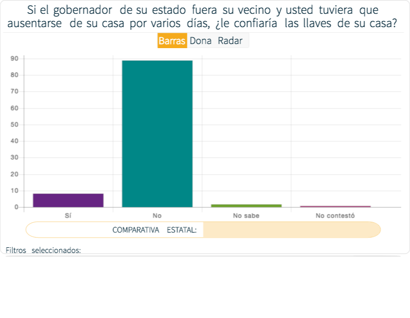 3.-Al planteamiento: Si el gobernador de su estado, fuera su vecino y usted tuviera que ausentarse de su casa por varios días, ¿le confiaría las llaves de su casa?