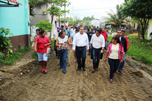 Posteriormente, la primera autoridad Municipal recorrió las calles de la Santa Rosa y constató las labores de relleno, renivelación de calles, elaboración de cunetas , retiro de maleza y desazolve de canales que lleva a cabo personal de Obras Públicas, como parte de la rehabilitación de las vías afectadas por las lluvias.