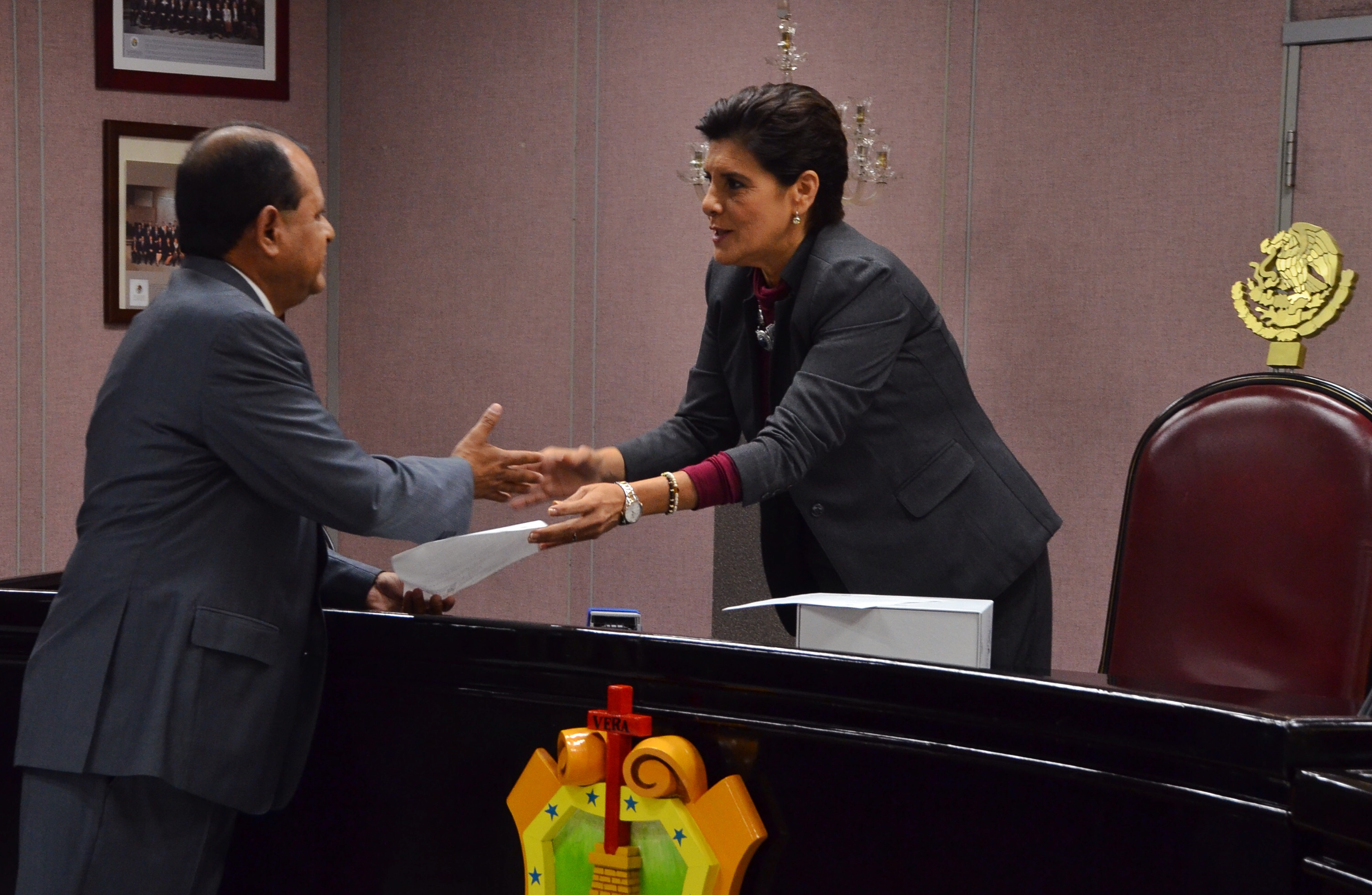 Posteriormente, Genaro Mejía entregó el informe en manos de la presidenta de la mesa directiva, María Elisa Manterola Saenz.