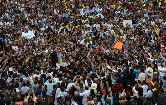 Las miles de personas en la plaza, ovacionaron al mandatario en repetidas ocasiones, sobre todo cuando se refería al gobierno pasado.