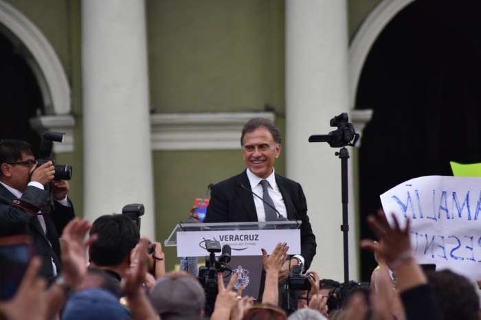 Yunes Linares prometió trabajar para hacer un gobierno honesto, eficiente y cercano a la gente "que realmente se comprometa a servirle a Veracruz, que no se alíe con delincuentes como sucedía en el pasado".