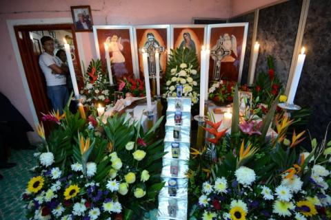 La casa de familia es pequeña, el cuarto principal ahora está convertido en una sala de velación y rezos, en el altar la foto de boda de Luis y Blanca se enmarca con las flores y los santos.