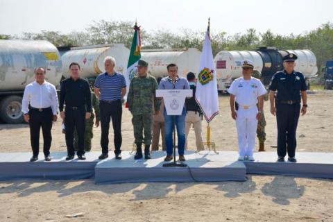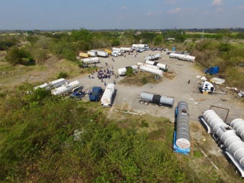 - 4 camiones tipo tanque cargados con 20,000 litros de hidrocarburo, cada uno.