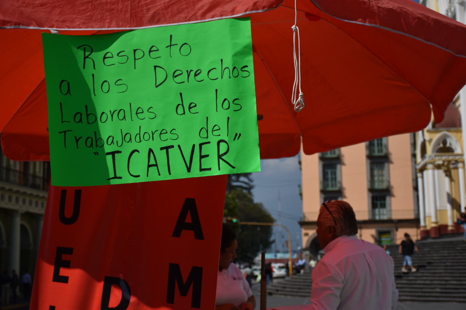 Xalapa, Ver.- Cuatro ex empleados del Instituto de Capacitación para el Trabajo de Veracruz (Icatver) y un acompañante más que realizaban una huelga de hambre en la plaza Sebastián Lerdo de Tejada, en protesta del despido injustificado por el director Alfredo Valente Grajales Jiménez, fueron detenidos por elementos de la Secretaría de Seguridad Pública (SSP) durante la madrugada del jueves, por supuestas “faltas administrativas”.