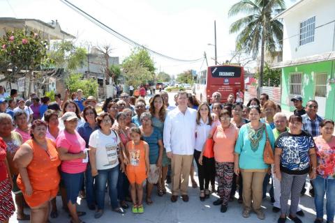 Inaugura Ramón Poo pavimentación hidráulica en la colonia Reserva I