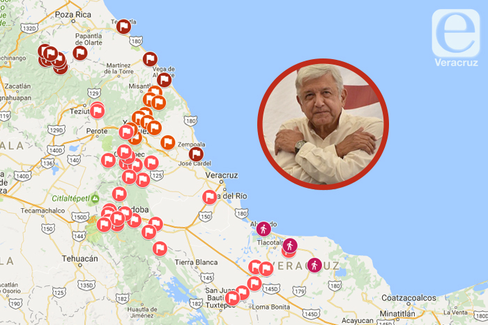 Mapa: sigue los pasos de Andrés Manuel por Veracruz
