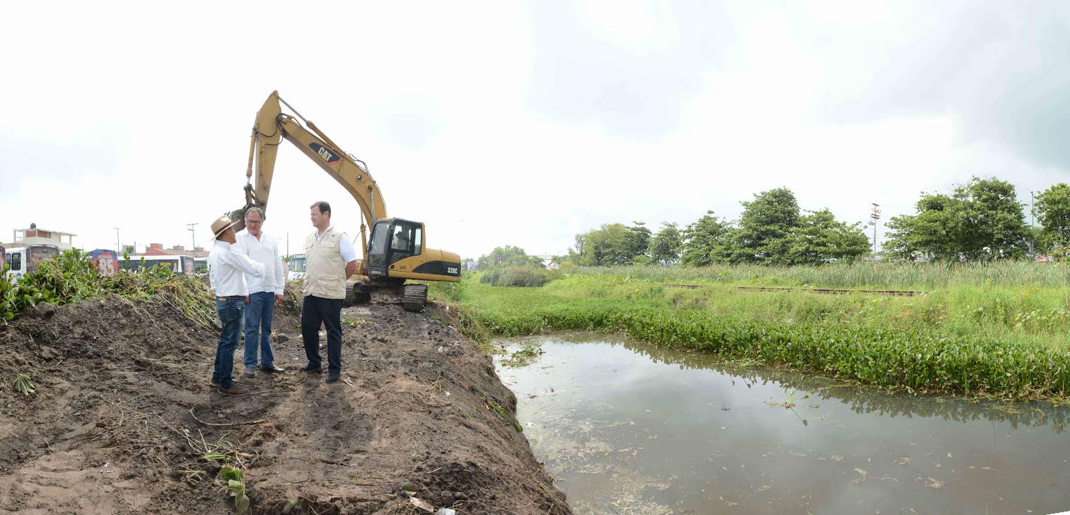 Veracruz, Ver.- Continuando con las acciones del programa ‘Juntos Prevenimos’, con el cual se busca evitar inundaciones además de erradicar criaderos de mosquitos transmisores del dengue, zika y chikungunya, el Presidente Municipal de Veracruz, Ramón Poo Gil, supervisó este martes los trabajos de desazolve en el canal pluvial ubicado en el fraccionamiento Geo Villas del Puerto, al poniente de la ciudad.