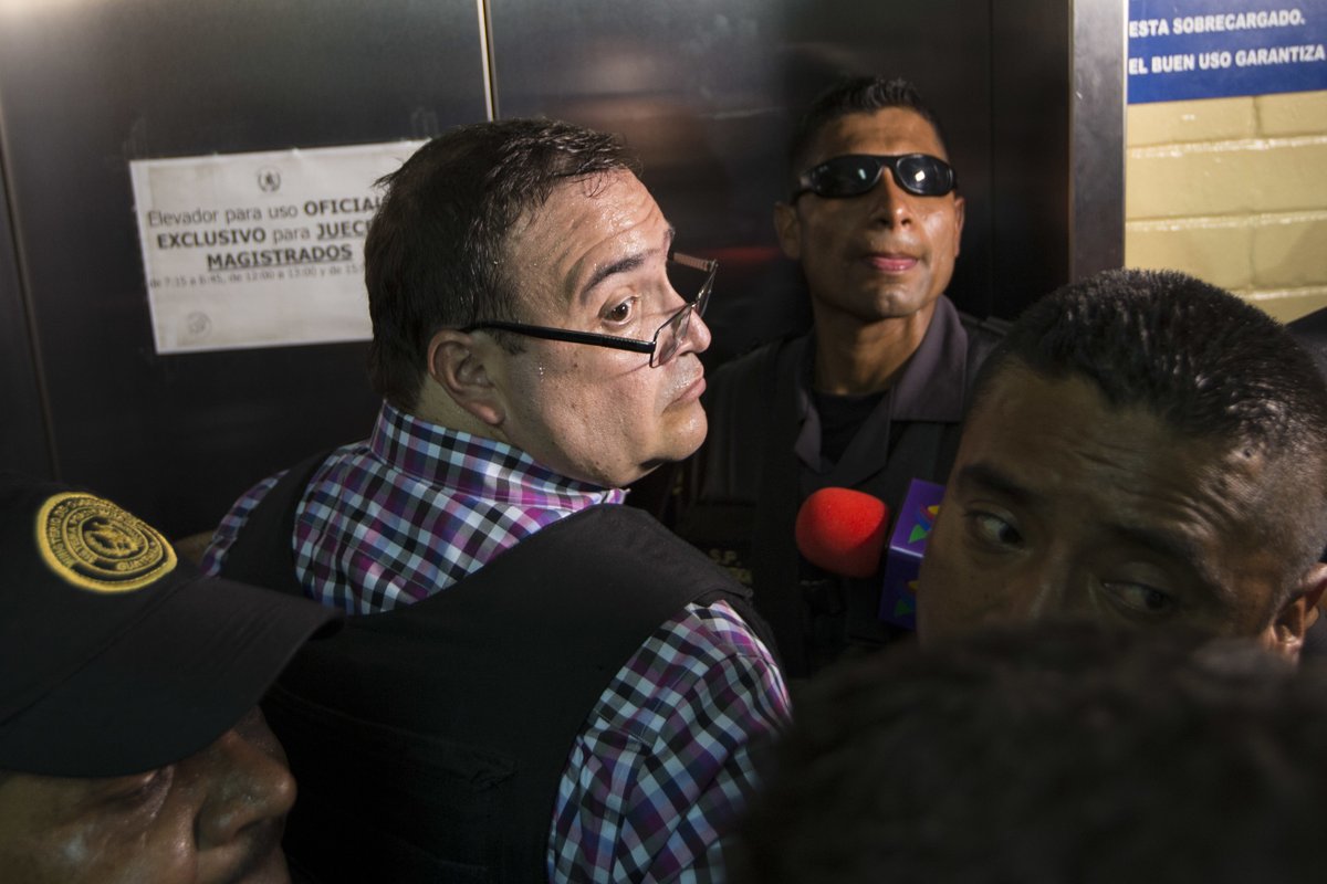 Custodiado por más de 20 policías y ataviado con un chaleco antibalas, Duarte fue trasladado desde una prisión militar hasta las instalaciones de los tribunales en la capital guatemalteca.