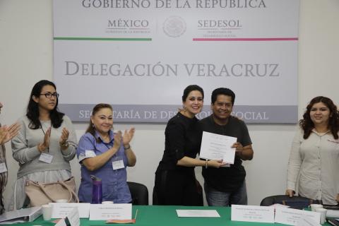 Xalapa, Ver.- La Secretaría de Desarrollo Social (Sedesol) y el Instituto Nacional de Desarrollo Social (Indesol) llevaron a cabo este día entrega de apoyos de la Convocatoria “Desarrollo Integral, alimentación, cohesión e inclusión social e igualdad de género en los Estados 2017” en donde resultaron beneficiadas 17 asociaciones civiles del Estado de Veracruz.