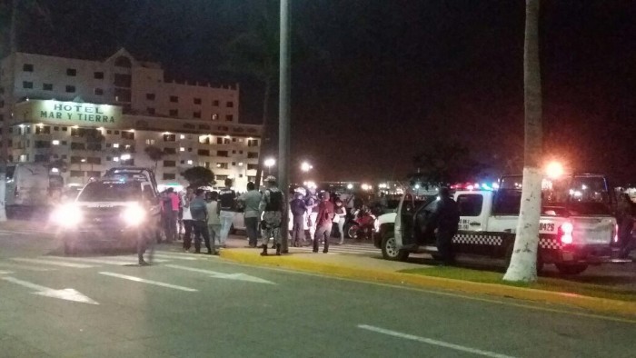 Unos 30 o 40 motociclistas se dieron a la fuga por la calle de Sporting al percatarse de la acción de los Policías Navales y estatales, quienes resultaron insuficientes para contener a los jóvenes que los superaban en número.