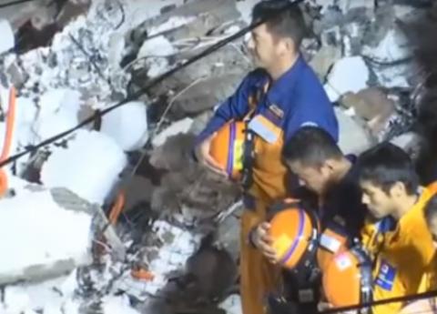 La muestra de solemnidad de los asiáticos fue conmovedora para los presentes, quienes aplaudieron el gesto de los rescatistas internacionales.