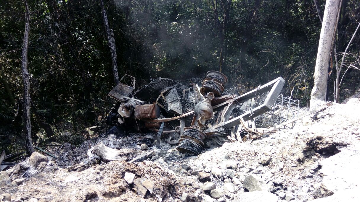 No obstante, el conductor de una camioneta en su intento de huir, perdió el control de la unidad y cayó hacia un barranco, ocasionando que ésta se comenzara a incendiar; por fortuna logró salir ileso.
