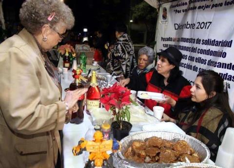 Frente al edificio Osa Mayor donde aún se puede ver una fachada destrozada, los vecinos de la Unidad Morelos compartieron en una mesa puesta en la calle, su reunión navideña.