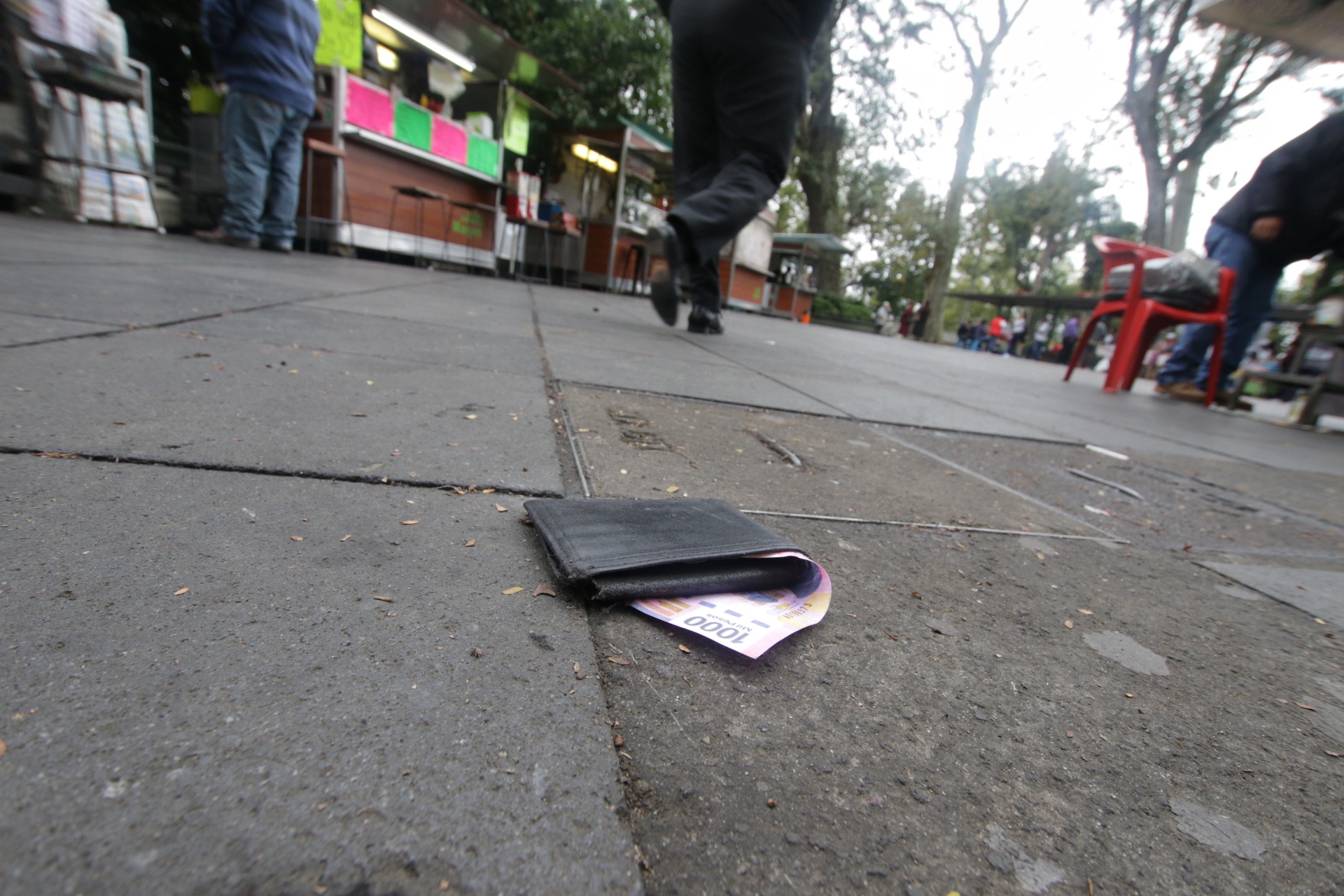 “Más en estos tiempos, se siente bonito encontrarse dinero, con lo difícil que está la situación” dijo una señora de aproximadamente 50 años, que vio la cartera, se agachó y quiso llevársela con todo y los supuestos billetes que contenía.