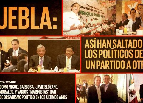 Los senadores Javier Lozano Alarcón y Miguel Barbosa Huerta son los ejemplos más recientes de políticos poblanos con presencia nacional que brincaron de partido para mantenerse activos y con posibilidades de obtener cargos de elección popular o en la administración pública. El primero renunció al PAN para ser nombrado vocero de la campaña presidencial del PRI y el segundo, salió del PRD después de 20 años para contender por la gubernatura a través de las siglas del Movimiento de Regeneración Nacional (Morena).