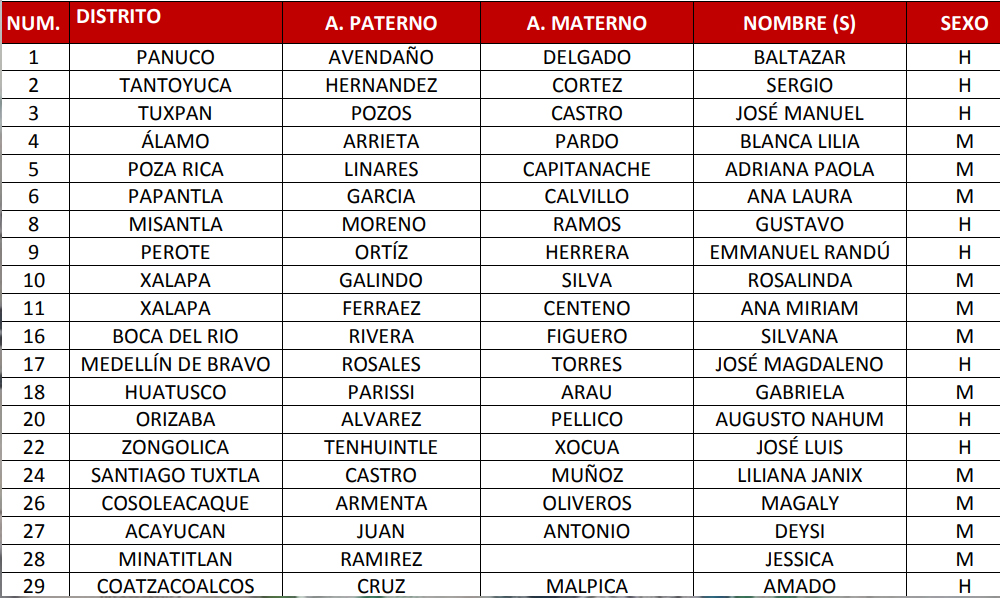 En la región sur: distrito 24, Santiago Tuxtla, Liliana Janix Castro Muñoz; distrito 27, Cosoleacaque, Magaly Armenta Oliveros; y distrito 27, Acayucan, Deysi Juan Antonio.