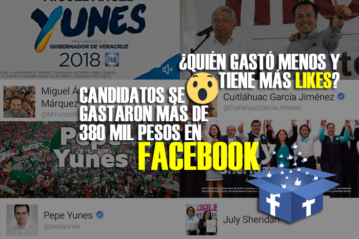 La autoridad fiscalizadora calculó el gasto de los ahora candidatos en Veracruz, con base a las tarifas que le reportó Facebook, pues los 4 abanderados omitieron reportar la inversión.