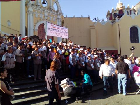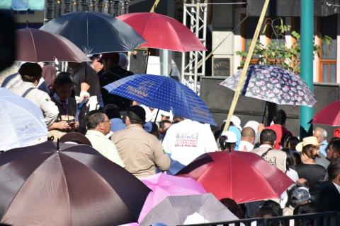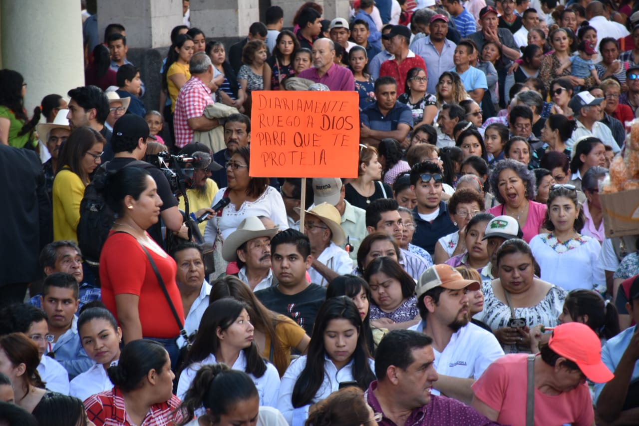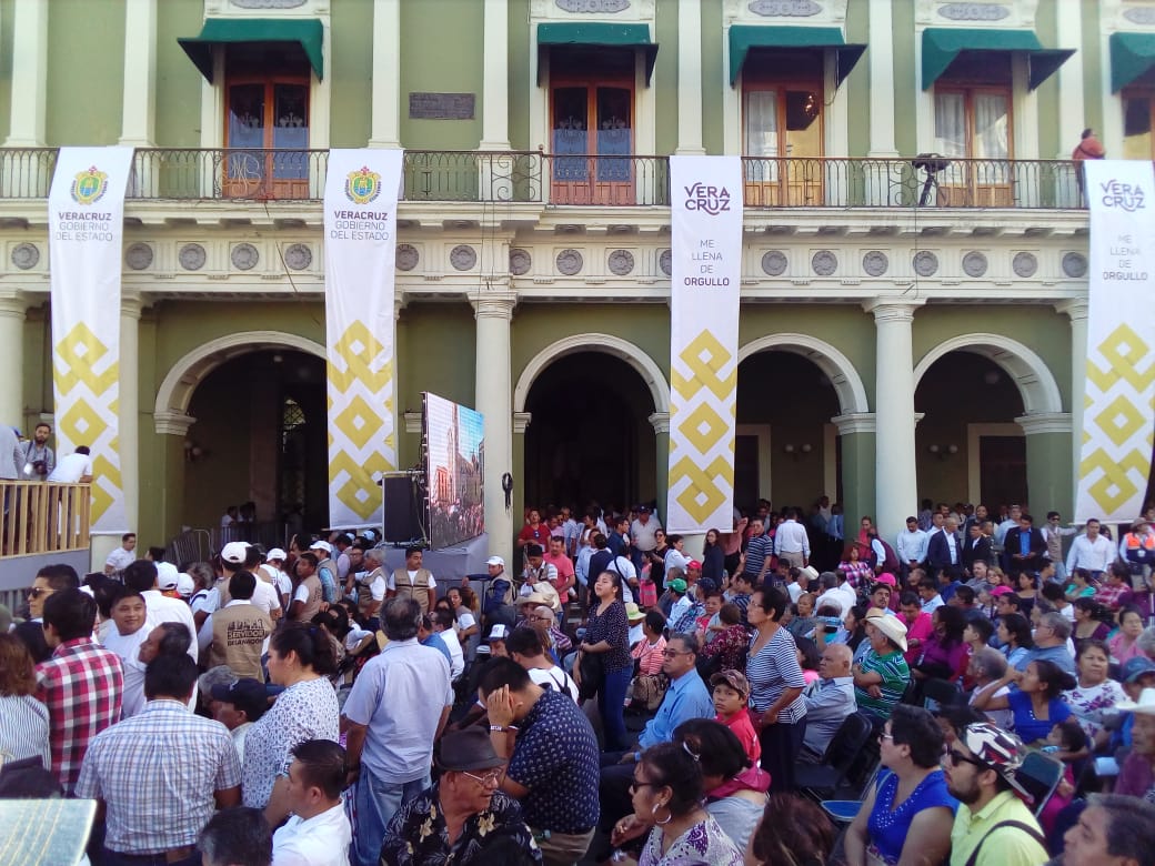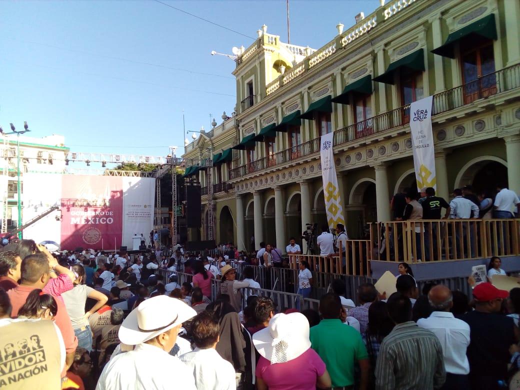 En la plaza Sebastián Lerdo de Tejada ya se encuentran cientos de personas aguardando la llegada de López Obrador que ocurrirá aproximadamente a las 5 de la tarde, aunque el evento podría demorarse.