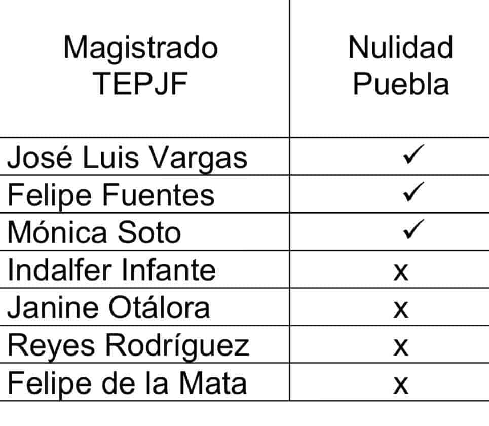 Días antes de que el Tribunal Electoral discutiera el caso, Vargas Valdés hizo pública su proyecto de nulidad, es decir, buscaba anular las elecciones en Puebla para que se volvieran a hacer.