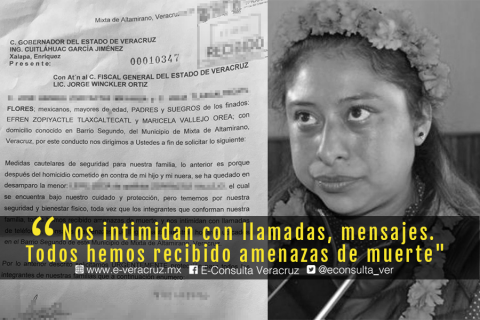 Xalapa, Ver. – La familia de Maricela Vallejo Orea, exalcaldesa de Mixtla de Altamirano asesinada el 24 de abril de 2019, denunciaron amenazas de muerte. En una carta dirigida al gobernador de Veracruz, Cuitláhuac García, urgieron medidas de seguridad para ellos, y un hijo menor de edad que quedó en la orfandad.