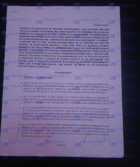 El despacho externo en el que se desempeña Luis Javier Velasco Ramírez, actual presidente del Colegio de Contadores Públicos de Xalapa, obtuvo uno de los contratos más importante por monto de dinero durante el 2017, que ascendió a los 2 millones 67 pesos, para la revisión de las finanzas y operación del Fideicomiso Veracruzano de Fomento Agropecuario.