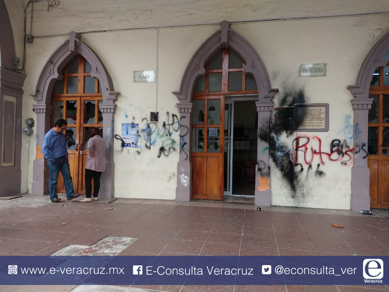 Altotonga, Ver.- Este martes después del mediodía y mientras los ediles se encontraban en una sesión de cabildo, un grupo de personas encapuchadas, armados con palos y piedras, causaron destrozos dentro del Ayuntamiento de Altotonga.