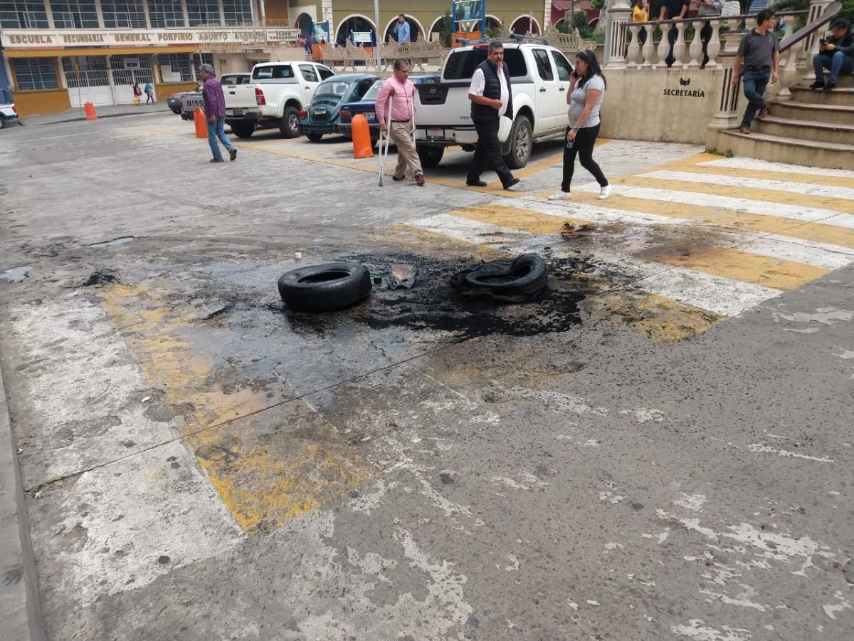 Este grupo también quemó llantas, pintaron las paredes y rompieron ventanas y puertas del recinto al estar inconformes con el alcalde Ernesto Ruiz Flandes.