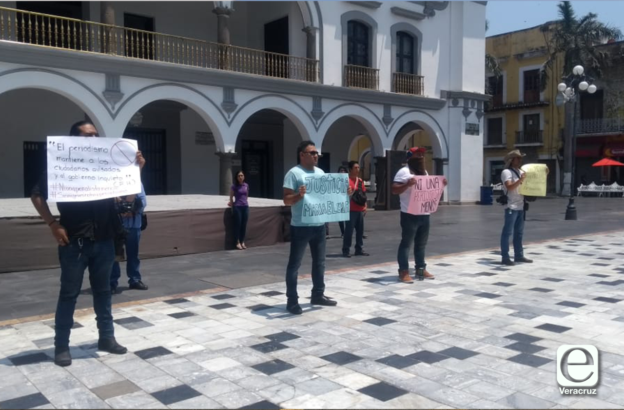 Veracruz, Ver. Perdiodistas de la zona conurbada Veracruz-Boca del Río se manifestaron en el zócalo de la ciudad para exigir justicia por el asesinato de María Elena Ferral, quien fue atacada a balazos el día de ayer en Papantla.