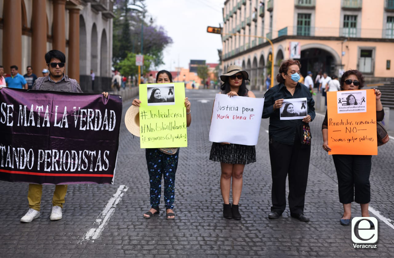 Xalapa, Ver.- Mientras el cuerpo de María Elena Ferral era despedido por sus familiares, compañeros y amigos en Papantla, un grupo de periodistas veracruzanos se manifestaron pacíficamente esta mañana en Plaza Lerdo para exigir justicia por el asesinato de la comunicadora.