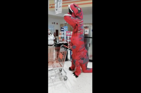 Coatzacoalcos, Ver.- “Yo sólo quería acudir a realizar mis compras y verle el lado chusco a esta pandemia y no me dejaron pasar”, expresó Antonio a quien este viernes 1 de mayo le negaron el acceso a la tienda comercial Chedraui de Coatzacoalcos por portar un traje de dinosaurio.