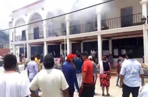 Incendian palacio municipal; pobladores se oponen a sanitización