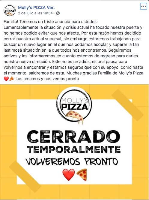 El 24 de marzo, Sergio Ahuizotl citó a una junta general con los colaboradores y se anunció el cierre al público de los comedores, informando que buscarían subsistir con el servicio a domicilio o bien por aplicación: