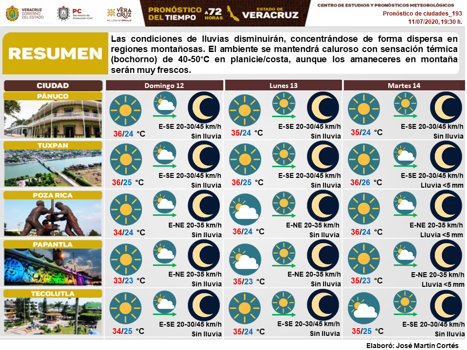 José Llanos Arias, subcoordinador de Fenómenos Atmosféricos de PC, dijo que las precipitaciones irían por arriba del promedio desde la cuenca del río Tuxpan hasta el río Colipa y que estas irían entre un 20 o quizá un 50 por ciento más de lo normal en estas épocas.