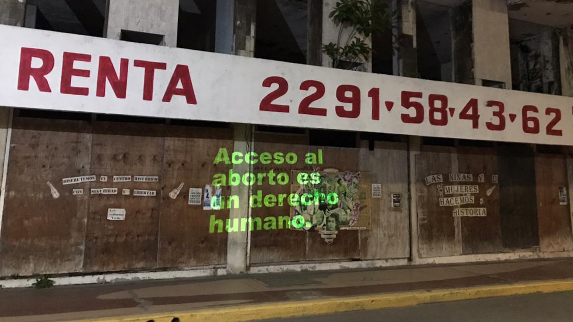 Durante la noche del 29 de julio, integrantes del grupo de activistas de los derechos de la mujer proyectaron sobre las paredes algunos monumentos y edificios de la zona conurbada Veracruz-Boca del Río, consignas y mensajes propios de la lucha feminista.