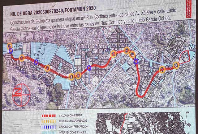 Se trata de once kilómetros de ciclovía en el sentido norte-sur y sur-norte, sobre la avenida Adolfo Ruiz Cortines, con lo que se conectará a la avenida Xalapa con la zona de Los Sauces.