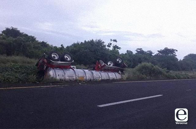 El percance sucedió en la carretera Cosamaloapan-La Tinaja. La pipa en cuestión transportaba acetato de vinilo, una sustancia inflamable.