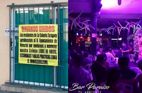 Veracruz, Ver.- Al frente del local del Bar Paraíso, vecinos de la colonia Zaragoza "celebraron" y agradecieron al ayuntamiento por el cierre de dicho establecimiento conocido por ser de temática LGBT.